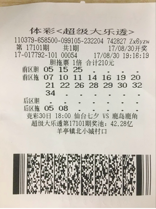 开奖,2注一等奖喜降威海,轰动整个威海彩市,顿时掀起一股购彩热潮。其中一注一等奖来自羊亭镇北小城17792投注站,彩民刘大哥(化姓)凭借一张胆拖票幸运中得大乐透一等奖1注、三等奖26注、四等奖78注,奖金合计555万余元。