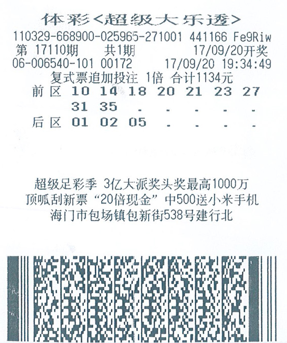 开奖的第17110期,他凭借一张复式追加票累计擒奖1663万元。