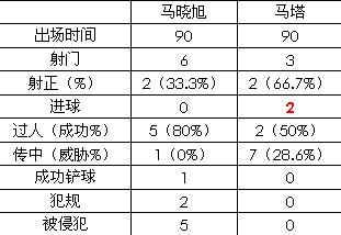 在本场比赛中,两个9.5型前锋在比赛中均未表现中自己最好的状态,马晓旭在个别技术细节上仍然显示出了他曾经的辉煌和良好的牵制,两次射正的远射脚头都很硬,而下半时69分钟那次过人后的小角度射门几乎复制了2004年亚洲杯决赛对澳大利亚的进球,不过整场比赛没有得分总是遗憾的,相比之下马塔更胜一筹,他3次射门2次得手,成功率66.7%。而且在马塔在边路活动频繁,全场比赛7次传中,2次造成门前威胁。而马晓旭全场只有1次传中,马塔对巴西队进攻的帮助显然更大,但这也许与对手有关,新西兰防守显然疏于对马塔的控制,而马晓旭则是全场被侵犯次数最多的球员。