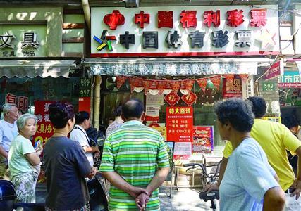 昨日,顺昌路597号福彩销售点贴出红色“特大喜讯”公告,引来附近居民关注。