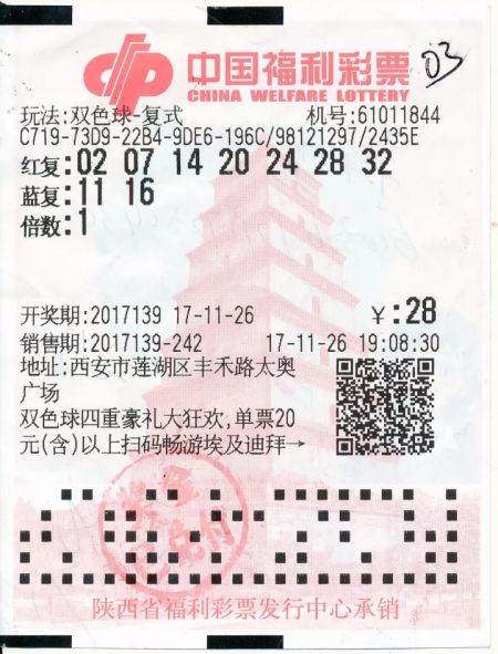 双色球当期全国唯一的复式投注一等奖,售出于西安市莲湖区丰禾路太奥广场61011844号投注站,为7+2复式票,除1注1482万多元一等奖外,还收获39万多元二等奖1注、三等奖和四等奖各6注,总奖金1524万元。